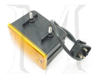 SQUARE LAMP W/AMBER LENS MOUNTED BELOW BUMPER. FOR LENS SEE # 82-3032.